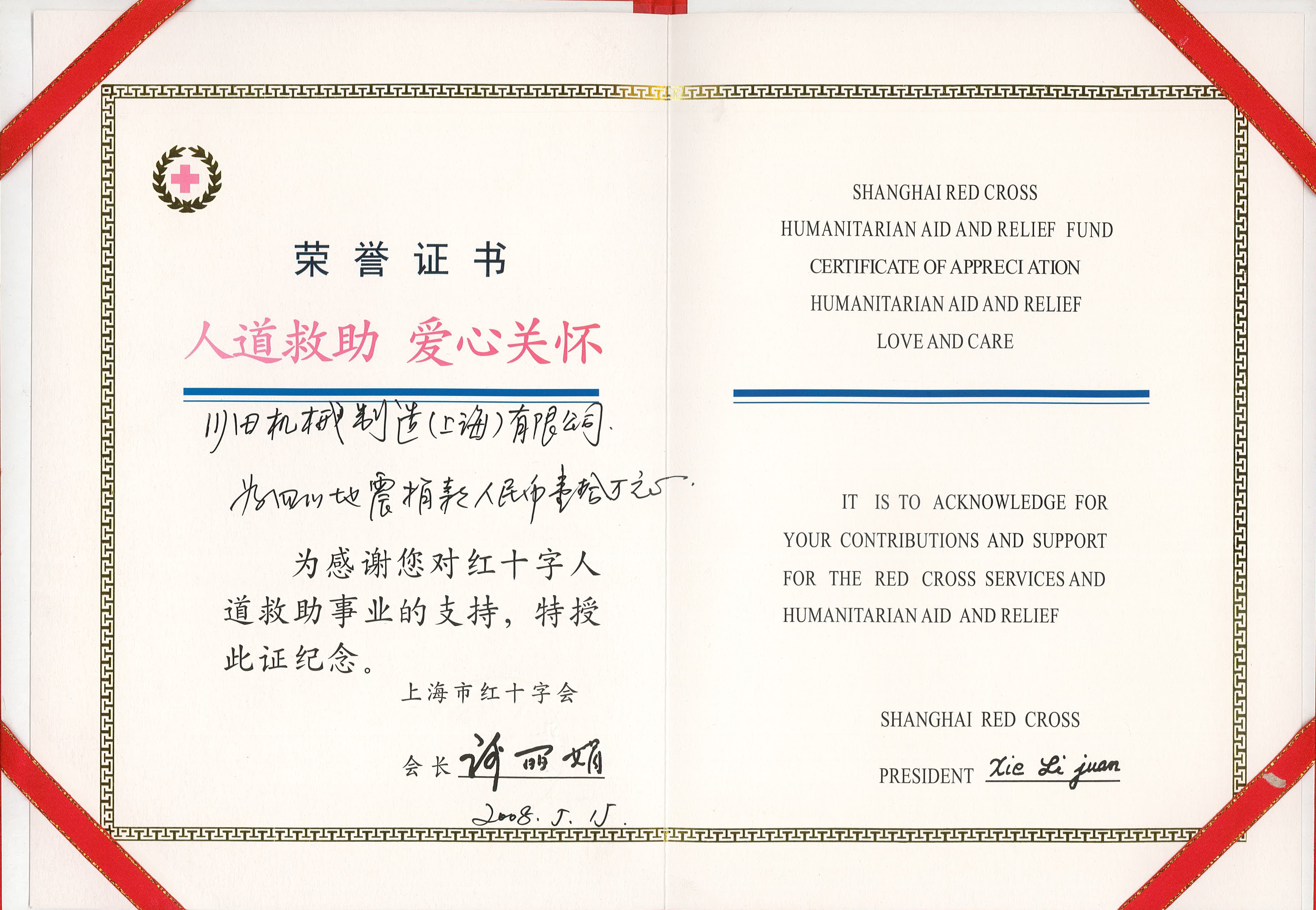 2008 上海紅十字會(huì)川田機(jī)械上海