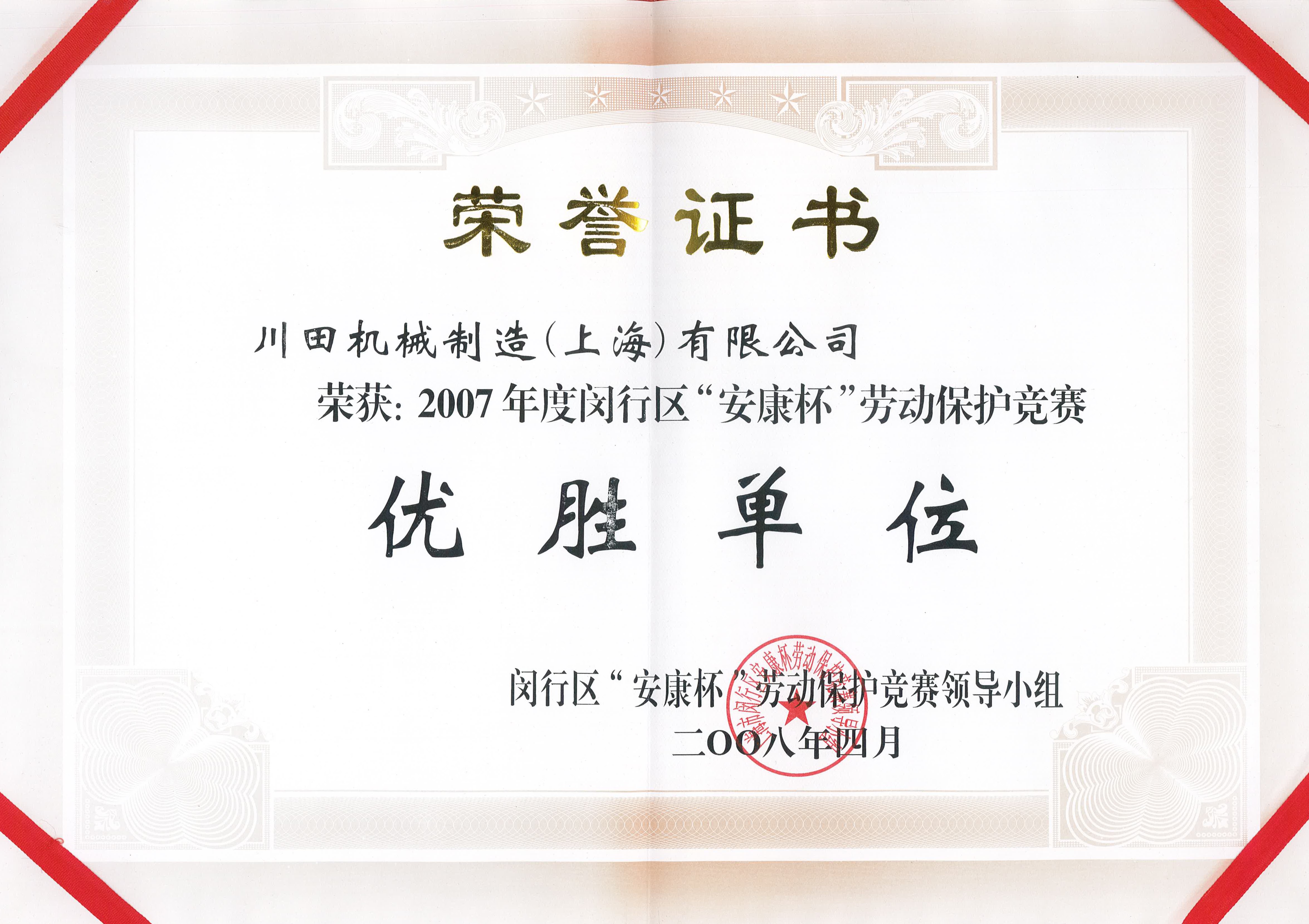 2008 閔行區(qū)安康杯勞動(dòng)保護(hù)競(jìng)賽優(yōu)勝單位